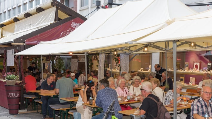 Herzliche Willkommen in unserer gemütlichen Laube "Currles Culinarium" in der Kirchstraße, direkt am Übergang zum Marktplatz.